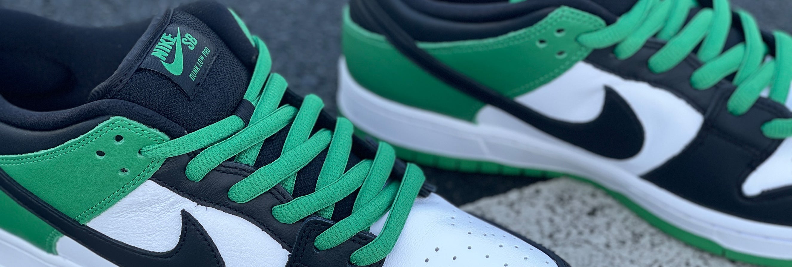 Heavily referencing 2009’s Air Jordan 1 “DMP” pack, the Nike SB Dunk Low Pro Classic Green features a Boston Celtics inspired white leather upper with black toe and swoosh and classic green detailing on the heel, laces and tongue badge. The shoe is finished with a white midsole and green outsole.